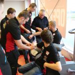 Vandaag zijn de mannen van DTS Opleidingen langs gekomen om een EHBO-training te geven. Bij deze training leerden wij hoe je iemand uit de auto kan halen, hoe je drukverband moet aanbrengen en hoe je iemand in de stabiele zijligging moet leggen. Deze training is een belangrijk onderdeel van de voorbereiding want veiligheid staat natuurlijk altijd voorop.